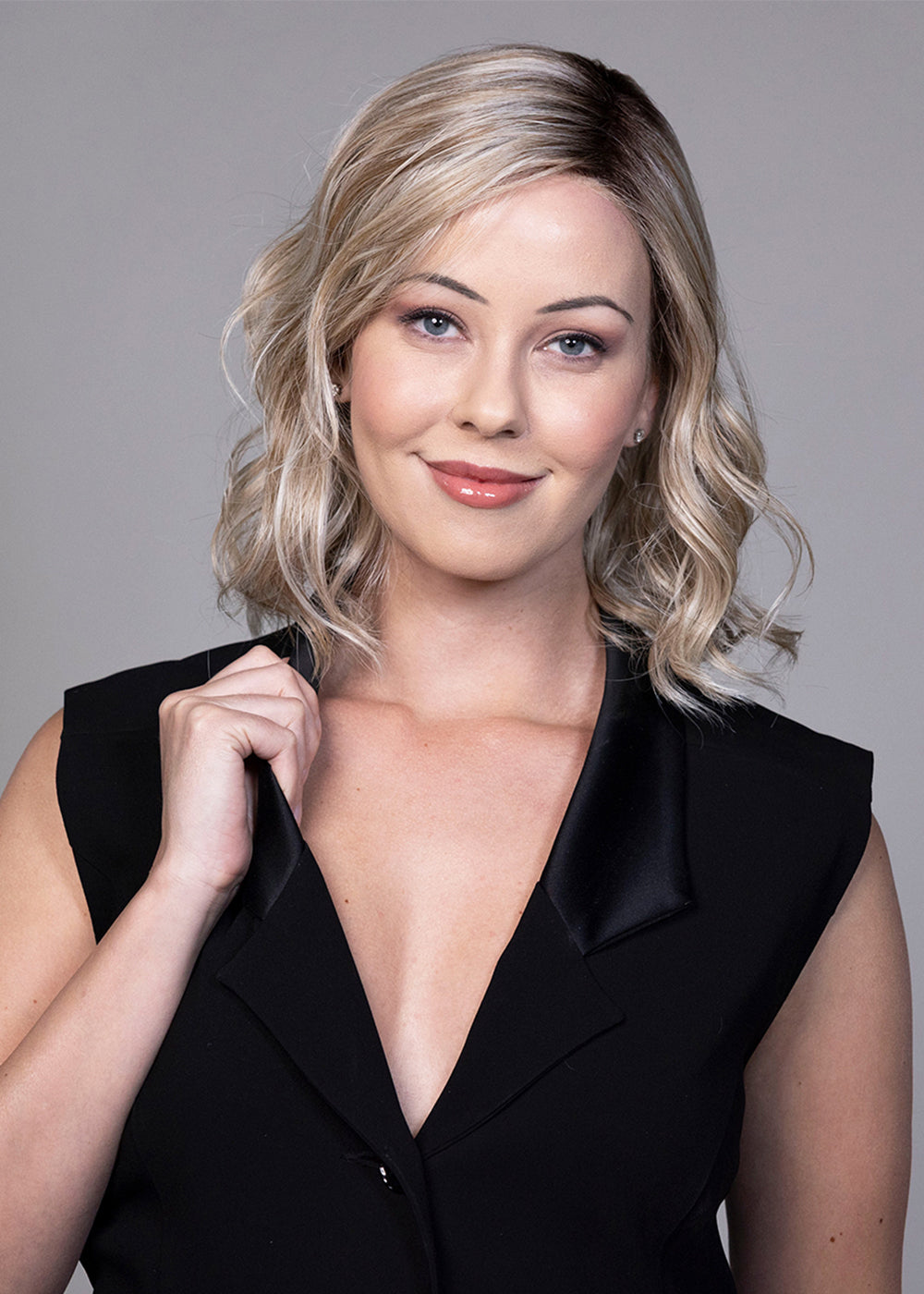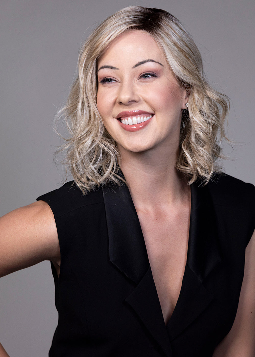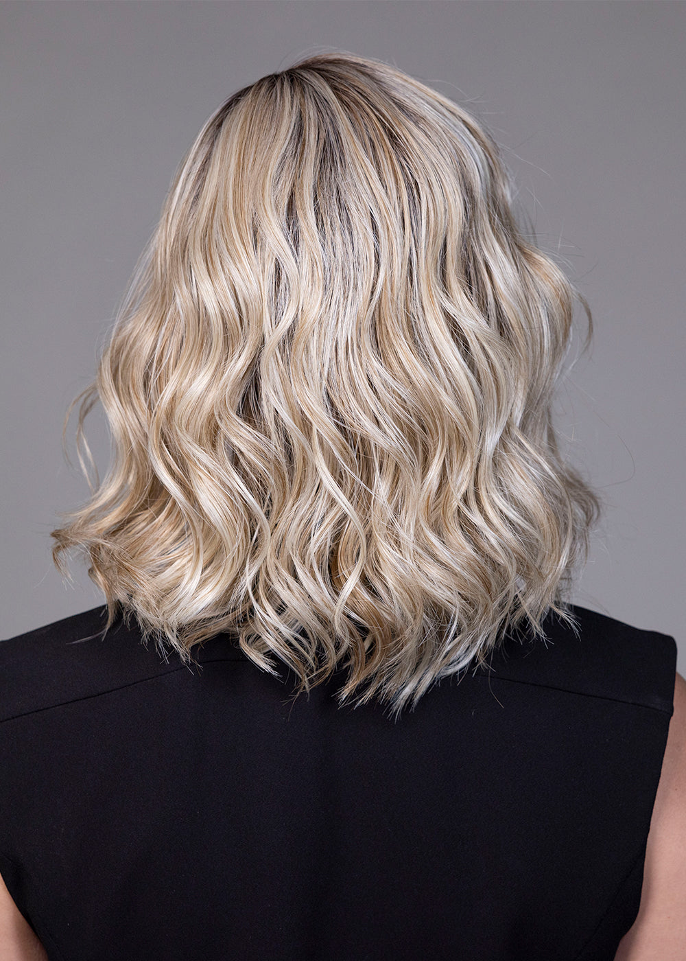Amaretto is a headful of soft,tousled waves that land just above the collarbone. With natural looking dark roots and a deep side part, this look is a little bit sassy and ever so sweet. Get ready to turn heads with the effortless and stylish Amaretto.