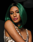 An enviable emerald shade makes this blunt bob a true gem. With its lace front hairline, center monofilament part and dark root, you’ll dazzle from every angle. And the heat-friendly Tru2Life fiber makes going from straight to wavy just a setting away.