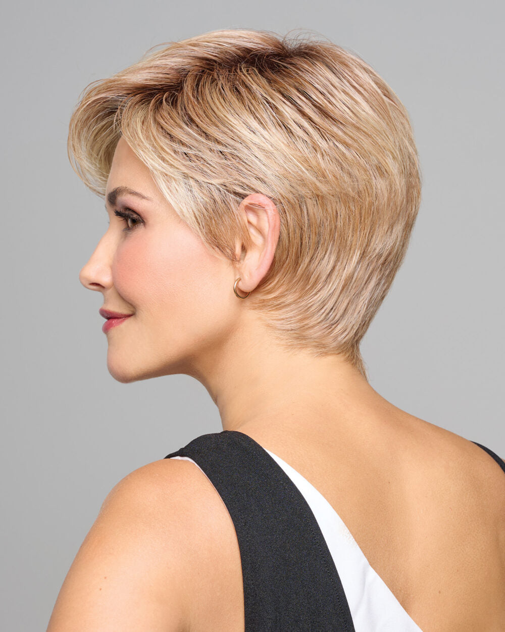 We’ve given a designer’s touch to this classic short crop of soft, razor cut layers, adding an asymmetrical fringe that looks flattering whether brushed away from the face or forward. The ultra-light cap is so comfortable, you’ll forget you’re wearing a wig at all.