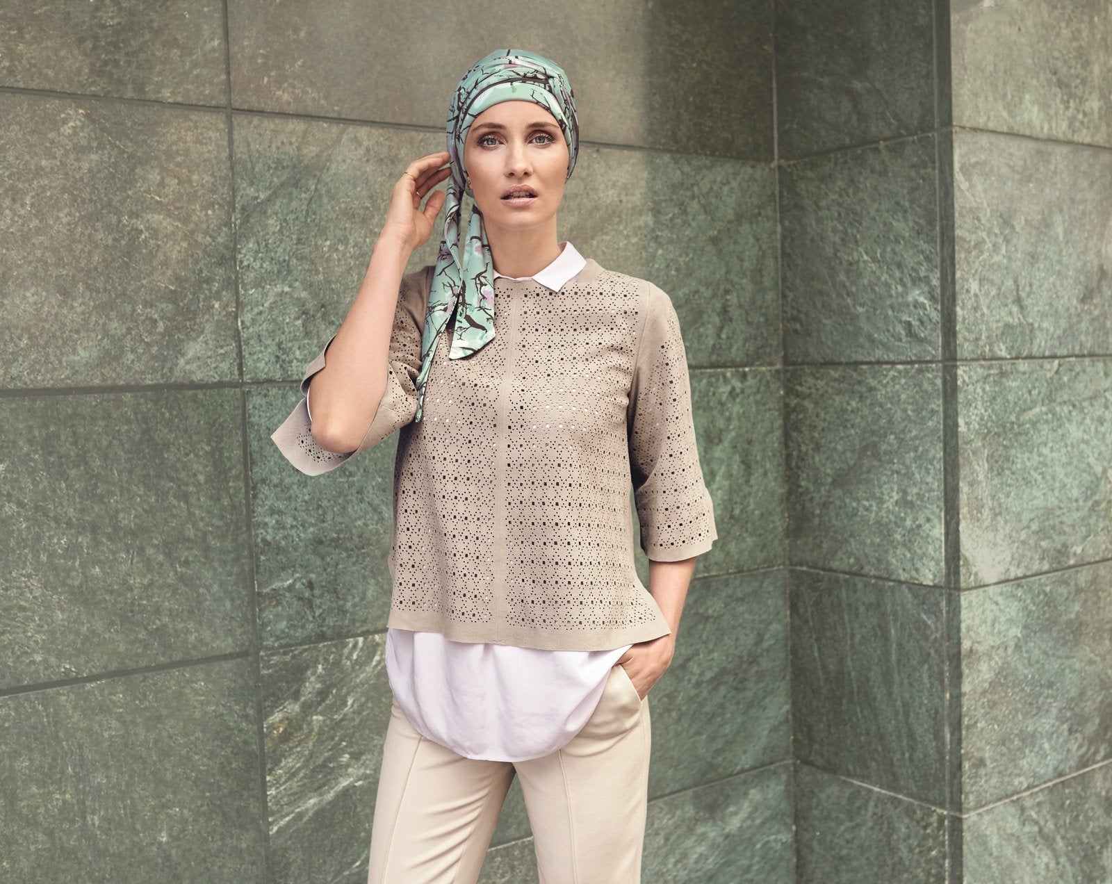 A beautiful scarf with a beautiful story. The Akina Scarf with its gorgeous magnoila print is designed by the renowned Danish super model and photographer, Helena Christensen. The Akina Scarf is the perfect choice if you wish to create a unique and personal look as the long ribbons provides endless styling opportunities. Wear it with long ribbons down the one side for an everyday relaxed look and be creative for those special occasions.